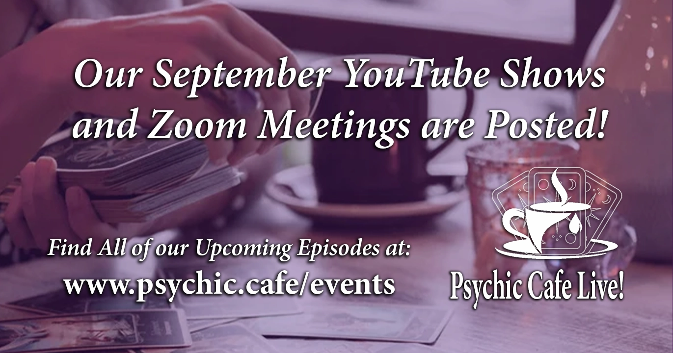 Our YouTube Live shows and Zoom Meetings for September have been posted in our Events section! Check out all we have in store for you this month! Just click on "Events" in the navigation... Or visit: psychiccafe.thetarotguild.com/events You can also see them listed under "Upcoming live streams" right on our YouTube channel's main page: www.youtube.com/@thepsychiccafe You can click on "notify me" under each upcoming live stream! ...Also, be sure to Subscribe to our channel and... Read more