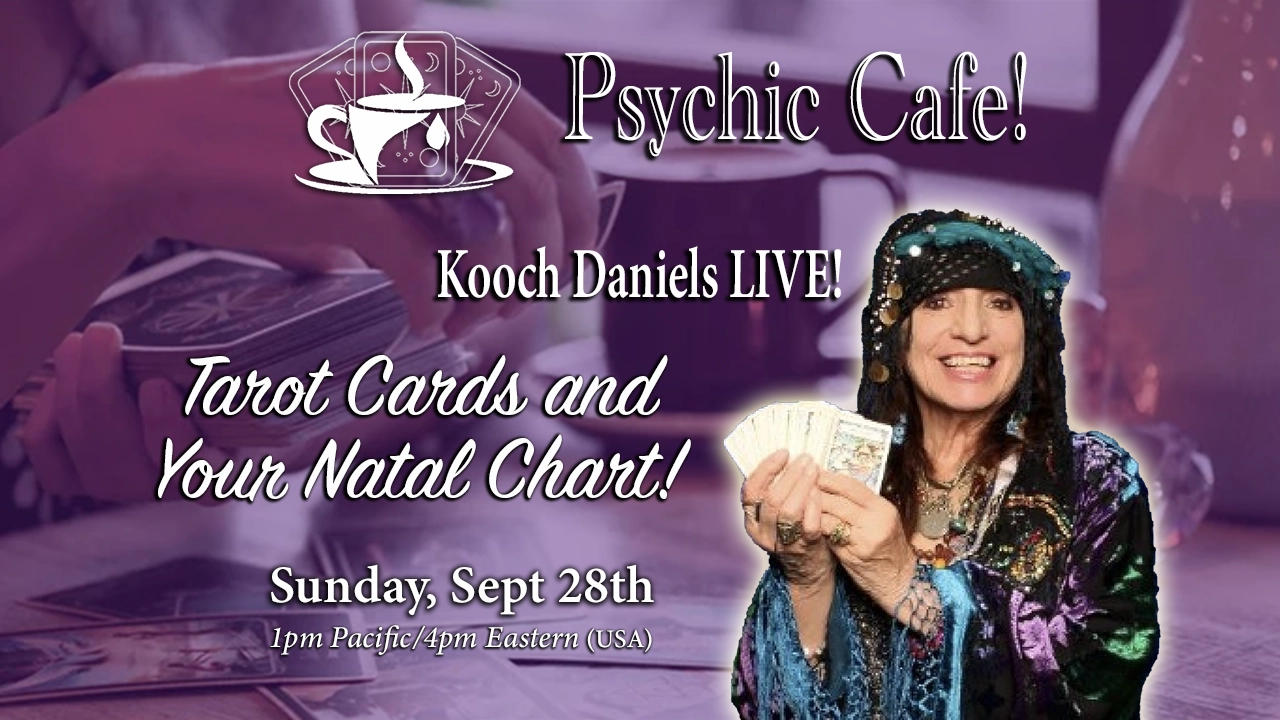 Author and Professional Intuitive Kooch Daniels returns with a Live Workshop this month! Join us on Sunday, September 28th, at 1:00 PM Pacific / 4:00 PM Eastern (U.S.)! Following our regularly scheduled "Psychic Cafe LIVE!" YouTube Show and Zoom Call (11:00 AM Pacific / 2:00 PM Eastern U.S.), Kooch will be teaching about "Tarot Cards and Your Natal Chart"! You can watch FREE and join in the Chat 💬 on YouTube! MEMBERS: You can join... Read more