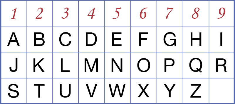 In Pythagorean Numerology, Letters are converted to Numbers, and then reduced to a single digit. For this, we use a Numerology Calculator or the Grid created by Pythagoras, 2600 years ago: